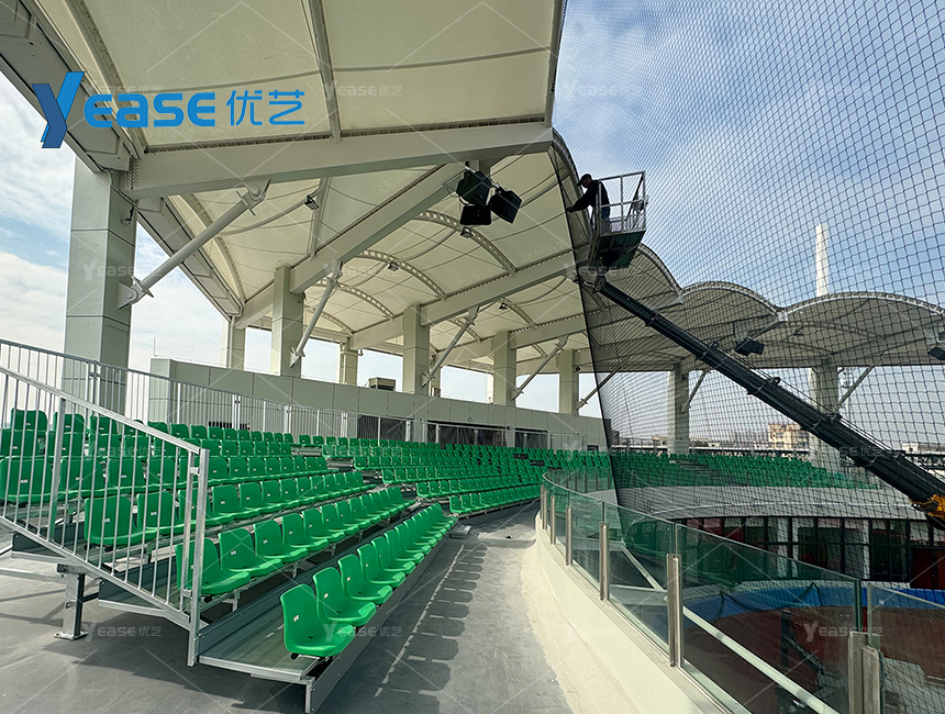 堅固耐用的鋼結(jié)構(gòu)看臺系統(tǒng),滿足戶外場館長期使用與高承載要求。